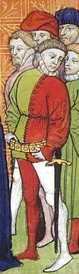 Man with buttons on the front of his garment, late 14th century. Grand Chronique de France, British Library, Royal 20 C VII, f. 22v