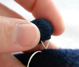 The most cost effective way to add miles of buttons to your clothing is making them from fabric. You can make lots of these little round balls from only a small amount of scrap material.