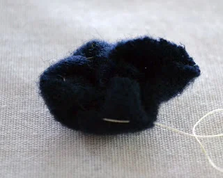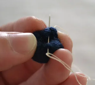 Gently pull the thread to draw the circle in and push the edges of the circle into the center "bag" that forms with your finger: